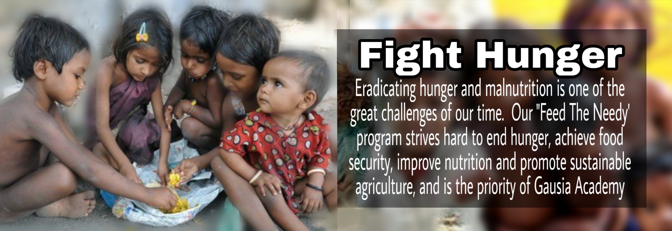 Gausia Academy endeavours to fight hunger. Many people don't get the food they need every day. This takes a terrible toll on their health and development, and threatens their life and future in profound ways. It also perpetuates the cycle of poverty.